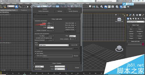 6、將燈光緩存light cache下的細分改到1200或者1500。細分值決定這成圖的細節,細分高成圖細節多,更加有質感。到這里基于測試圖的成圖參數就設置完成了。