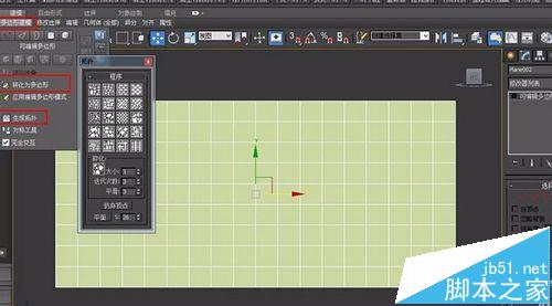 1、我們在基本幾何體中找的平面(plan)命令。在前視圖中我們創建一個片