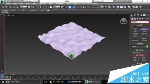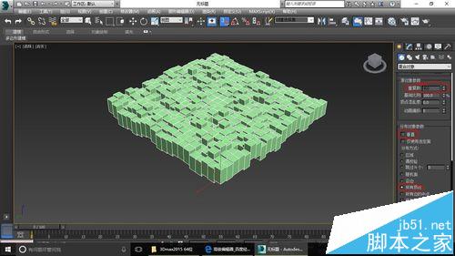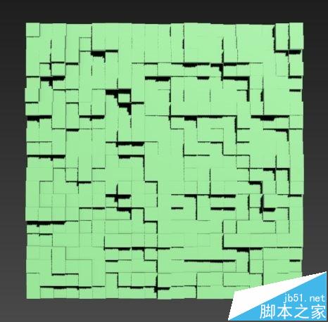 注意事項:“分布對象參數”里如果“垂直”的勾選沒有去掉,分布的各長方體就不會指向同一方向,而是垂直于平面噪波生成的凹凸面。