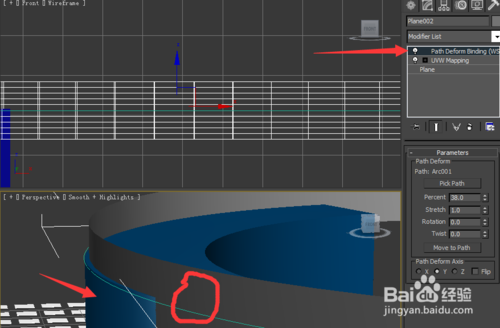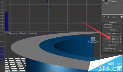 11、我們要求光是貼在物體上面的,我們在pathdeform上面把旋轉值改為90就可以了,