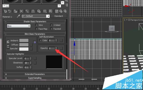 7、把第一層改為O之后我們看到,材質已經是透明的了,然后我們把材質類型改為雙面材質, 再把材質的亮度達到100,然后我們在Diffuse里貼入背景白色的光,在opacity里貼黑色背景的光