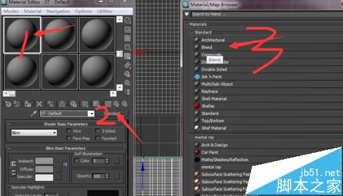 3、之后我們打開3Dmax,我們選擇一個材質,在選擇standard——blend,