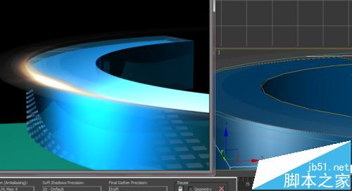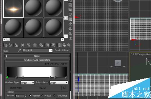 9、如圖所示,我們把漸變圖層調成兩頭黑,中間白,因為在max中黑透白不透,你把它兩邊調成黑色,光的硬邊就看不到了!