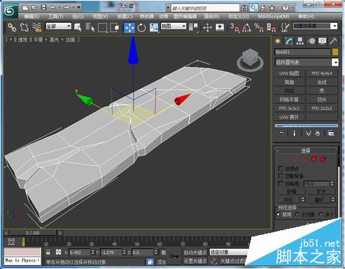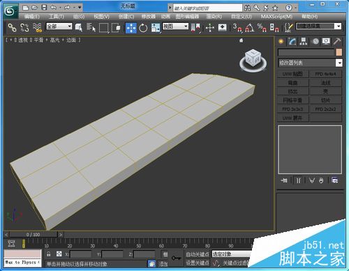 1、打開(kāi)3dmax,在場(chǎng)景中用box做出一個(gè)木頭模型,轉(zhuǎn)換為可編輯多邊形