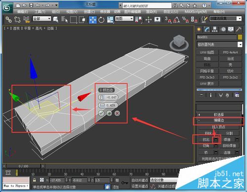 4、選定裂痕的邊,點(diǎn)擊“編輯邊”里面的“擠出”進(jìn)行裂痕的參數(shù)調(diào)整,點(diǎn)擊勾勾確定