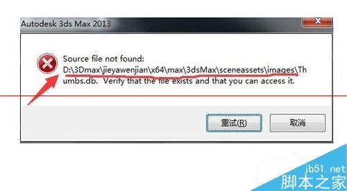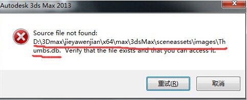 安裝3DMAX 2013(2014) 出現(xiàn)錯(cuò)誤提示:Source file not found:X:/Autodesk3dsMax/x64/max/3dsMax/sceneassets/images/Thumbs.db Verify that the file cxists and that you can access it.該怎么辦呢?