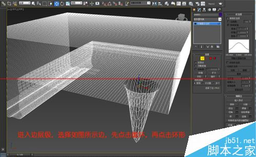 5、進入邊層級,選擇如圖所示邊,先點擊循環,再點擊環形