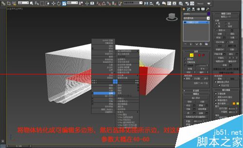 2、接著把物體轉化成可編輯多邊形,然后選擇如圖所示邊,對這些邊進行連接命令,參數大概在40-60都可以,電腦配置高的多連點,配置低的少連點
