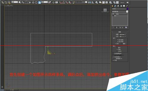 1、首先創建一個如圖所示的樣條線,調好點后添加擠出命令,參數如圖:
