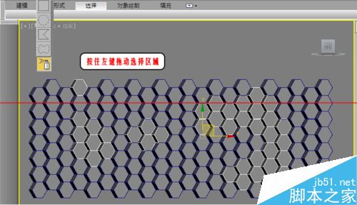 2、我們可以看到這些圖形是六變形物體,旋轉的話,我們要渲染60度,或者是60的倍數旋轉單個方塊。這里我用的是“繪制選擇區域”里面的噴霧,按住左鍵不放選擇,會根據鼠標走向隨機選擇