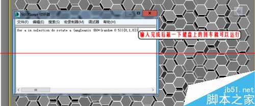 2、選中場景中所有物體,在偵聽器彈出框內輸入“for a in selection do rotate a (angleaxis (60*(random 0 5))[0,1,0])”回車,此時我們就可以看到場景中的物體隨機旋轉了。語句中“60*(random 0 5)”我們給的角度屬性為:60的倍數旋轉區間是0~5倍。