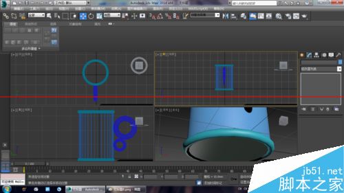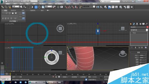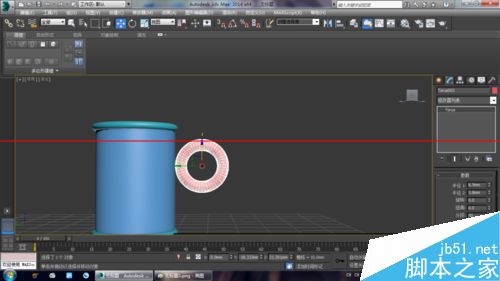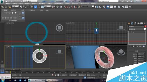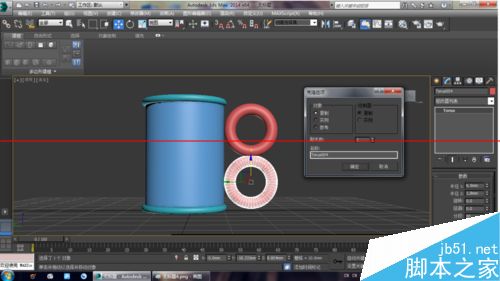 3、使用“選擇并移動”工具選擇圓環,然后按住Shift鍵在前視圖中向下移動復制一個圓環到管狀體底部,如圖