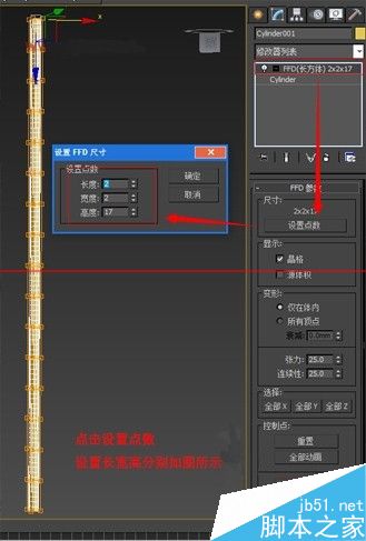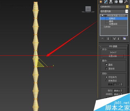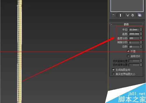 1、在頂視圖創(chuàng)建圓柱體,參數(shù)為:半徑20、高度2000、高度片段劃分:100。