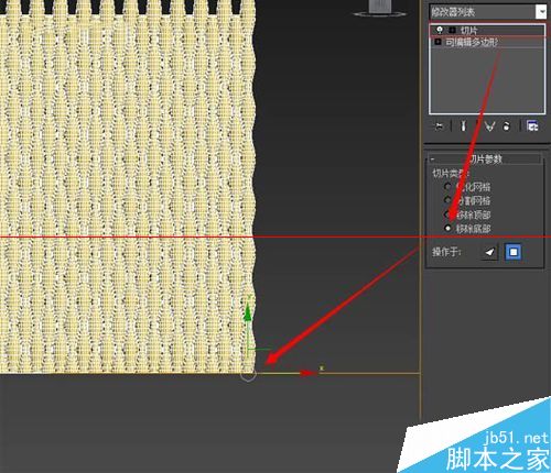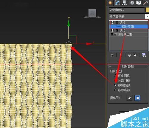 4、在修改命令面板中添加切片命令,選擇移除底部。
