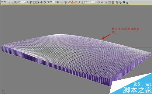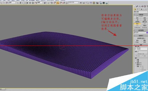 19、將布爾結果轉為可編輯多邊形,Z軸方向壓平,切到正視圖看看效果。
