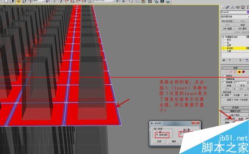 8、選擇全部的面,點擊插入(Inset)參數如圖。(這里的inset是為了避免后面布爾運算出錯,所以數值盡量少)