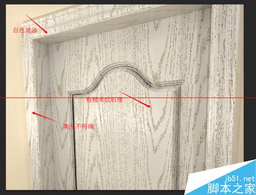 3、我們根據開放漆的特性,可以用Vary材質中的blend混合材質來調節。先調節一個白色混油材質和一個粗糙的木漆材質,然后制作一張木紋的黑白貼圖,將兩種材質混合起來即可。