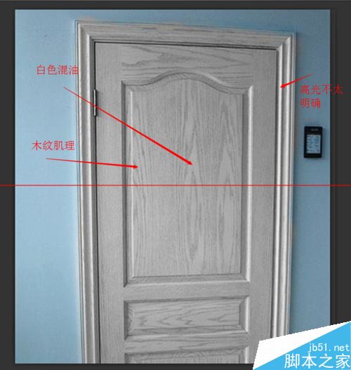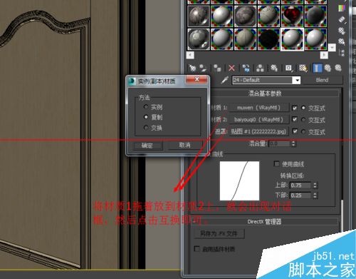 7、用PS參考開放漆木紋來制作一張混合貼圖。貼圖的制作要結合測試渲染反復調節。將貼圖放到混合材質的“遮罩貼圖”位置。如果發現遮罩貼圖使得效果反了,這樣的話,互換“材質1”和“材質2”即可。
