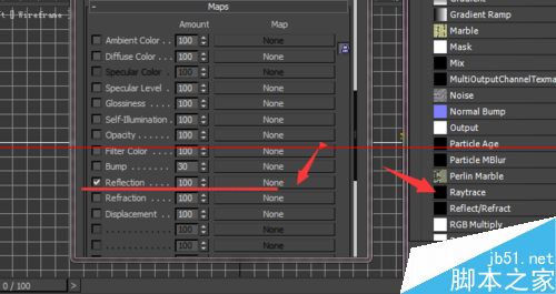 5、接下來(lái)就是給材質(zhì)添加命令了,我們選擇reflection,添加raytrace也就是光線跟蹤!