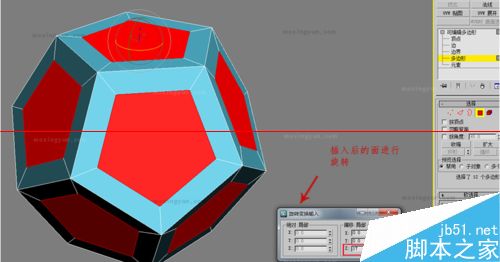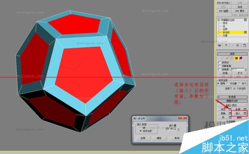 12、再次選擇五邊形面進行插入"插入”后的面進行“塌陷”成為一點。