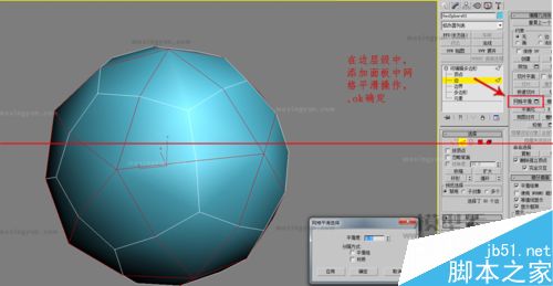 3、在邊層級中,添加面板中網格平滑操作,,ok確定