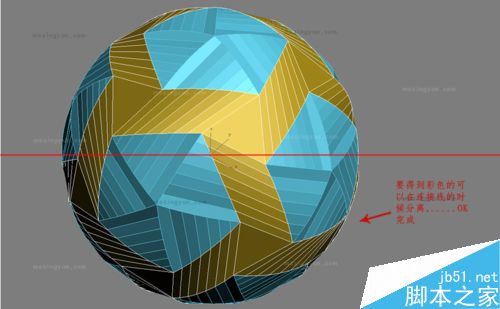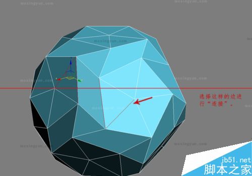 14、連接后的效果,照這樣的方法把其它的邊也進行連接.連接完后的球體感覺不像圓形,我們來給個”球形化”看看。