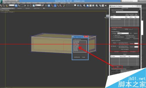 5、然后安數字鍵0,如圖紅框里面的照著勾好,然后點擊Add,選擇我們要烘培的normal就點擊normalsmap如果烘培ao就選擇lightingmap。