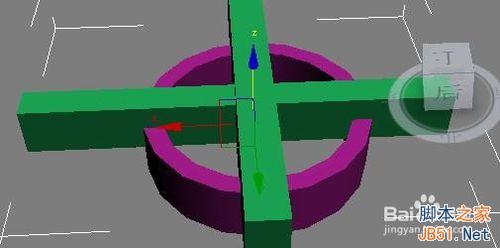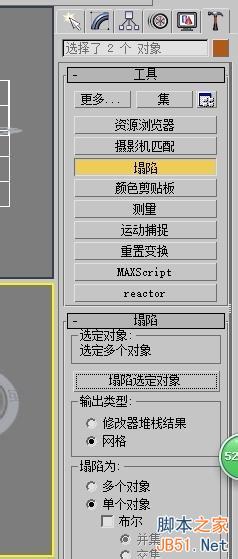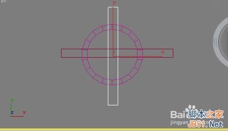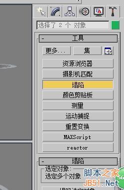3、按住Ctrl鍵選中兩條長方體,操作欄選擇工具按鈕,選擇塌陷 在選擇選中塌陷對象,把它們結為一體。向上移動長方體到圓環中間。