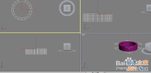 6、現在我們創建底部。在頂視圖畫出一個圓柱體,設置如下,將圓環移動到相應位置