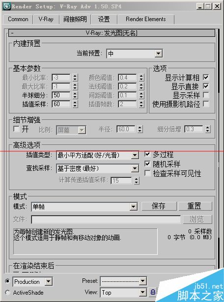 7、燈光緩存設置 如圖:存儲直接光 和顯示計算相位勾選上