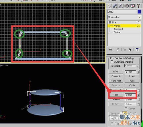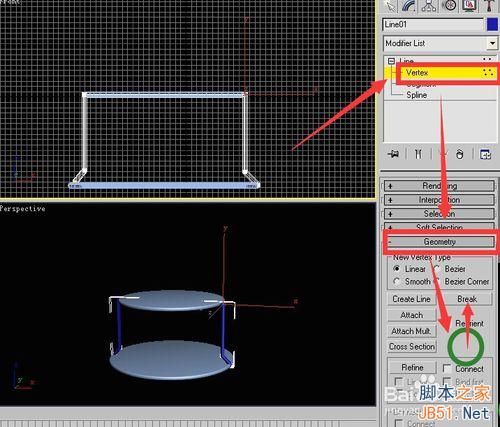 3dmax9英文版利用二維線形制作鐵藝圓凳 第3步驟和第8步驟是重點 第三步驟講的是如何在渲染類下設(shè)置參數(shù) 使得繪制的線形產(chǎn)生三維效果 第八步驟講的是如何為直線頂點設(shè)置圓角 需要將面板向下拖動才能看到geometry