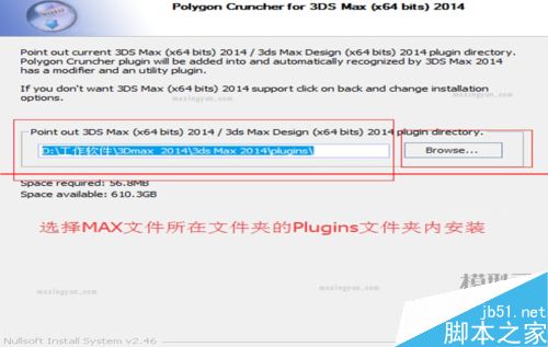 接著要瀏覽對應的max文件所在文件夾,找到Plugins文件夾進行安裝,如圖: