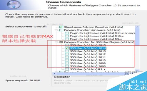 接著來的窗口是根據自己電腦的Max版本選擇安裝合適的版本,我常用的Max軟件是Max2014,如圖: