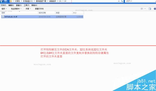 打開剛剛解壓文件的Crk文件夾,32位系統選32位文件夾,64位選64位文件夾里面的文件復制并替換到剛剛右鍵屬性打開的文件夾里面,如圖: