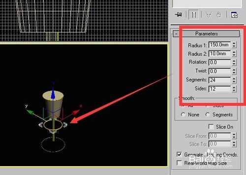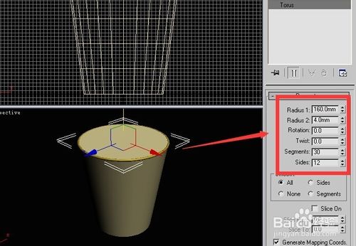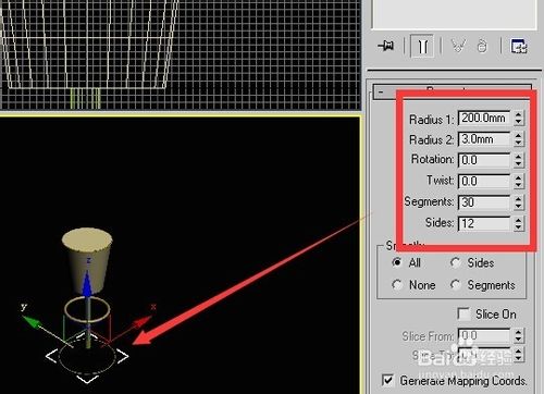 3、再制作一個(gè)torus 設(shè)置參數(shù)如下箭頭所指