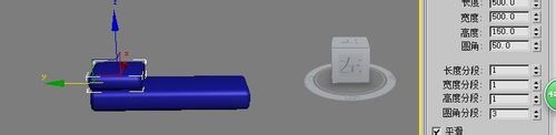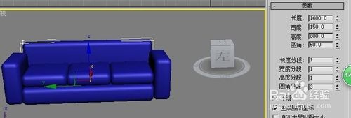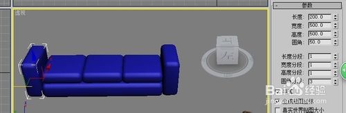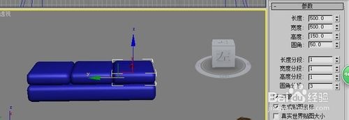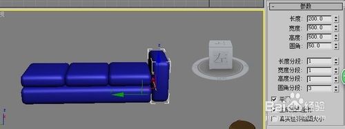 2、在頂視圖拉出一個長方體,制定尺寸:長1500 寬500 高200 圓角50。做出沙發底座圓角度數越大它的棱角越為平滑