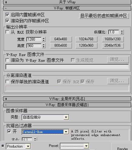 13、再按下F10出來VR渲染的設(shè)置