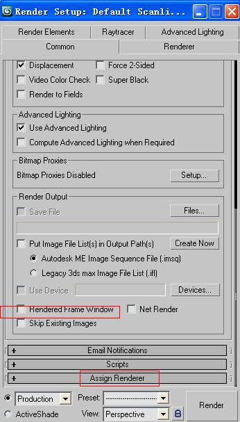 7、按下F10 出來渲染器選擇。如圖,取消對RENDERED FRAME WINDDOW,因為我們用另外的渲染器VR來處理。