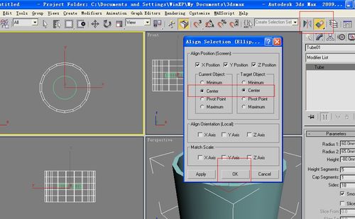 5、再選擇好杯身跟杯底對齊,放好。我運用一個對齊命令A(yù)lign。