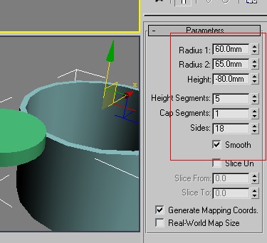 4、選擇這個三圍的按鈕,制作軟管,設(shè)置好參數(shù)尺寸,作為杯身。