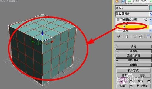 1、首先在透視圖里畫出一個正方體,設(shè)置好邊長和分段數(shù),分段數(shù)設(shè)為3。