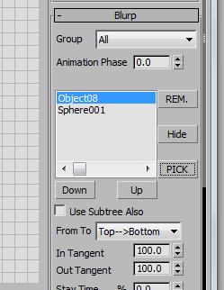 11,面板中出現了一個Blurp圖標,選中它,在其右面參數欄中,點擊Pick,拾取場景中兩個角色,如下圖: