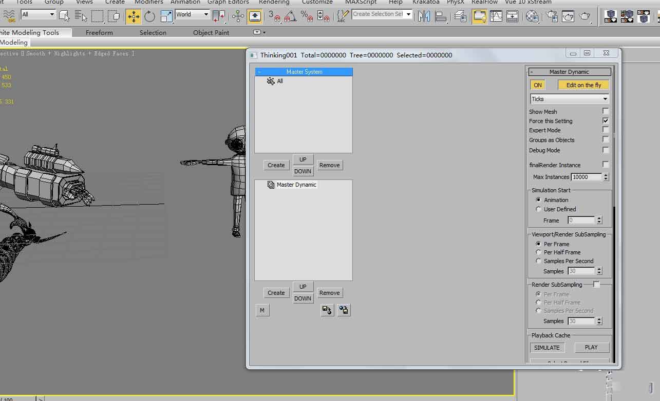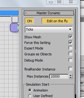 6,到TP的主程序面板右面,點擊Edit on the fly,讓粒子實時顯示,點擊勾選上show mesh,讓粒子顯示實體,看見Ticks了吧,在它的右面三角形,點擊右下拉欄,選擇None,如下圖: