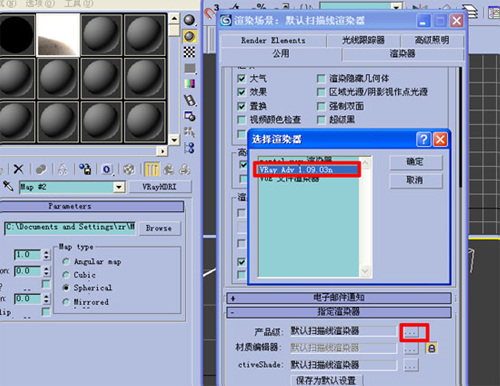 1、點擊瀏覽~~給一個環境貼圖~~~~2、選擇VRAY渲染器~~~