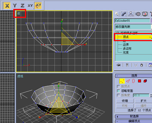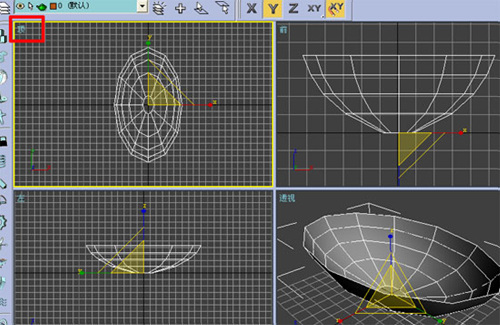1、在頂視圖繼續調~~~2、透視圖選邊~~左視圖結合SHIFT鍵向右上方拉動