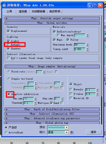 1、去掉默認光,選細分~~~~2、打開照明~調節比率
