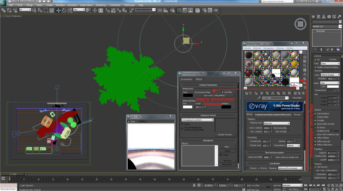 You only have to set the mapping type to spherical, horiz,. rotation to control the sum beam direction, and gamma to set a correct GI, sun and strong shadow shape.· 只需把設貼圖設置成球形水平旋轉來控制光束的大方向,把gamma設置成正確的GI,太陽光和重陰影形狀。This is the simulation using different gamma values:· 下面是不同gamma值下的效果。
