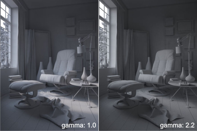 Increased gamma can make a soft shadow effect and weak sun lighting. Decreased gamma can make the shadow look sharpen and strong sun lighting.· 較高的gamma值能達到柔和的光影效果,而較低的光影對比更強烈。