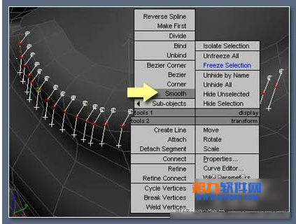 選擇每根線的中心點,右擊,從快捷菜單選擇"smooth" 選項。