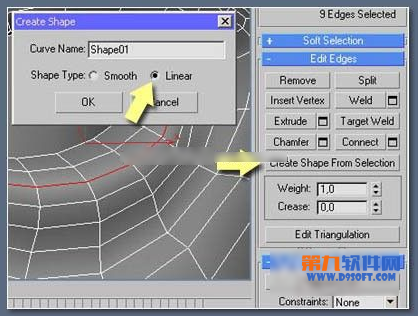 點擊"create shape from edges"按鈕,設(shè)置"shape type"為"linear" 。
